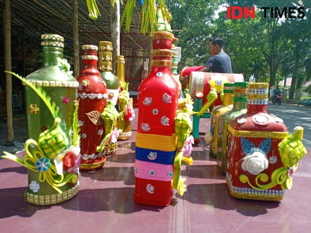 "Seperti botol mineral ini, kalau dijual paling Rp1.500, tapi kalau uda dikreasikan bisa sampai Rp50.000," ujarnya sembari memperlihatkan botol yang dimaksud.