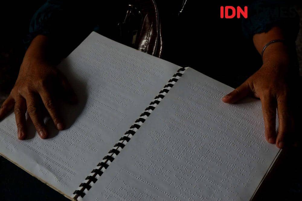 1. Jemari para disabilitas begitu gesit saat meraba Alquran Braille