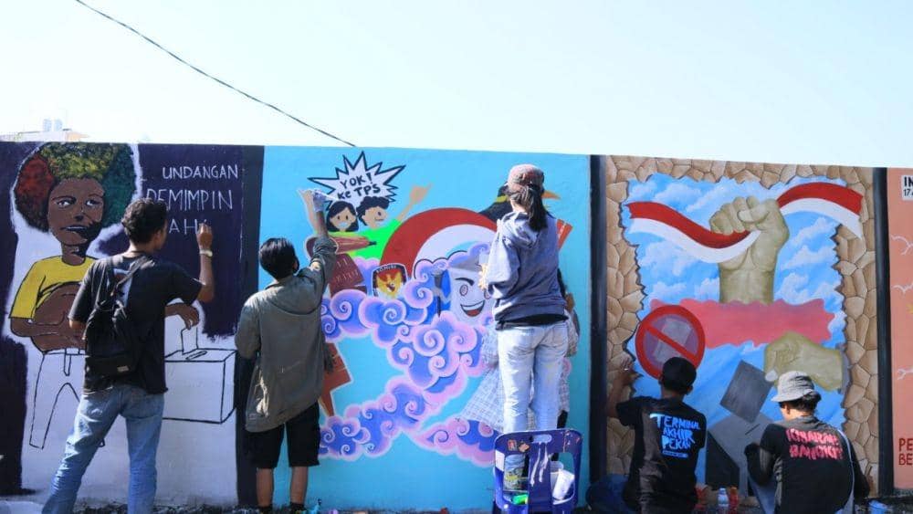 [FOTO] Ikut Kompetisi Mural, Ini Ekspresi Diri Milenial untuk Pemilu