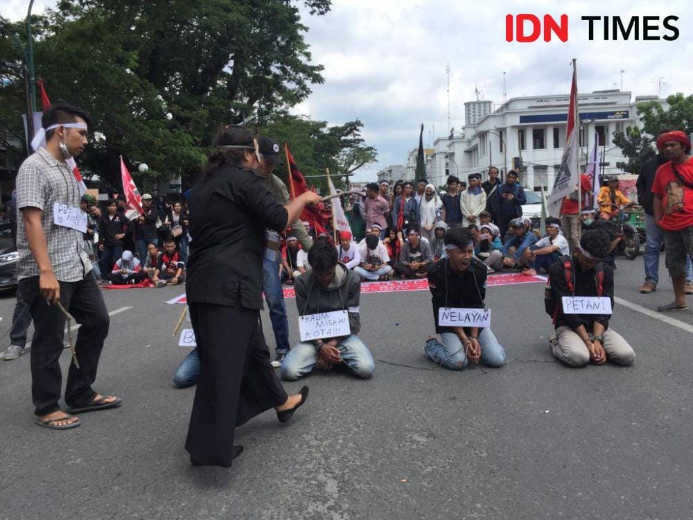 1. Buruh DBSU curi start rayakan May Day di Kantor Gubernur, mereka bawa pocong guys