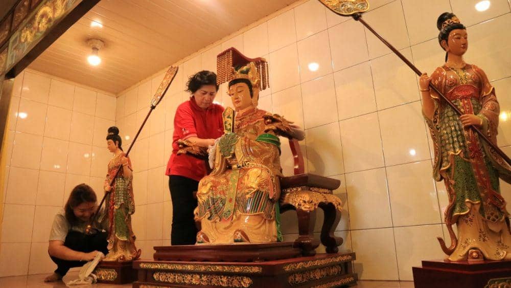 2. Menjelang Imlek, Ritual membersihkan vihara adalah hal wajib bagi warga Tionghoa
