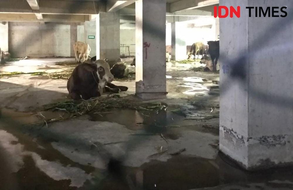 Sampai di lokasi, sapi itu langsung dibawa masuk ke basement masjid untuk digabungkan dengan hewan kurban lainnya.