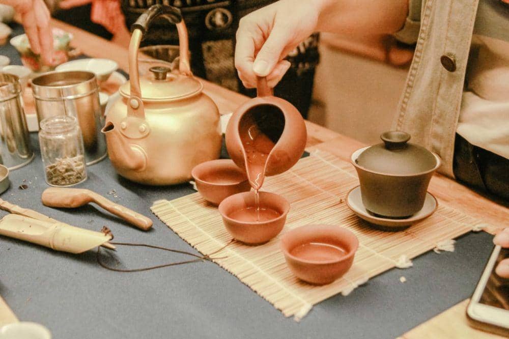 1. Tradisi menyajikan teh dengan teko dan mangkuk yang terbuat dari tanah liat untuk menambah kandungan teh