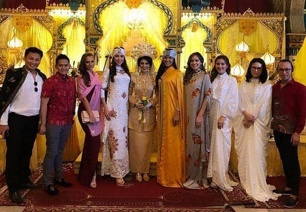 8. Bersama para sahabatnya dari ajang kecantikan, Ariska mengenakan pakaian pengantin gaya Melayu serba emas